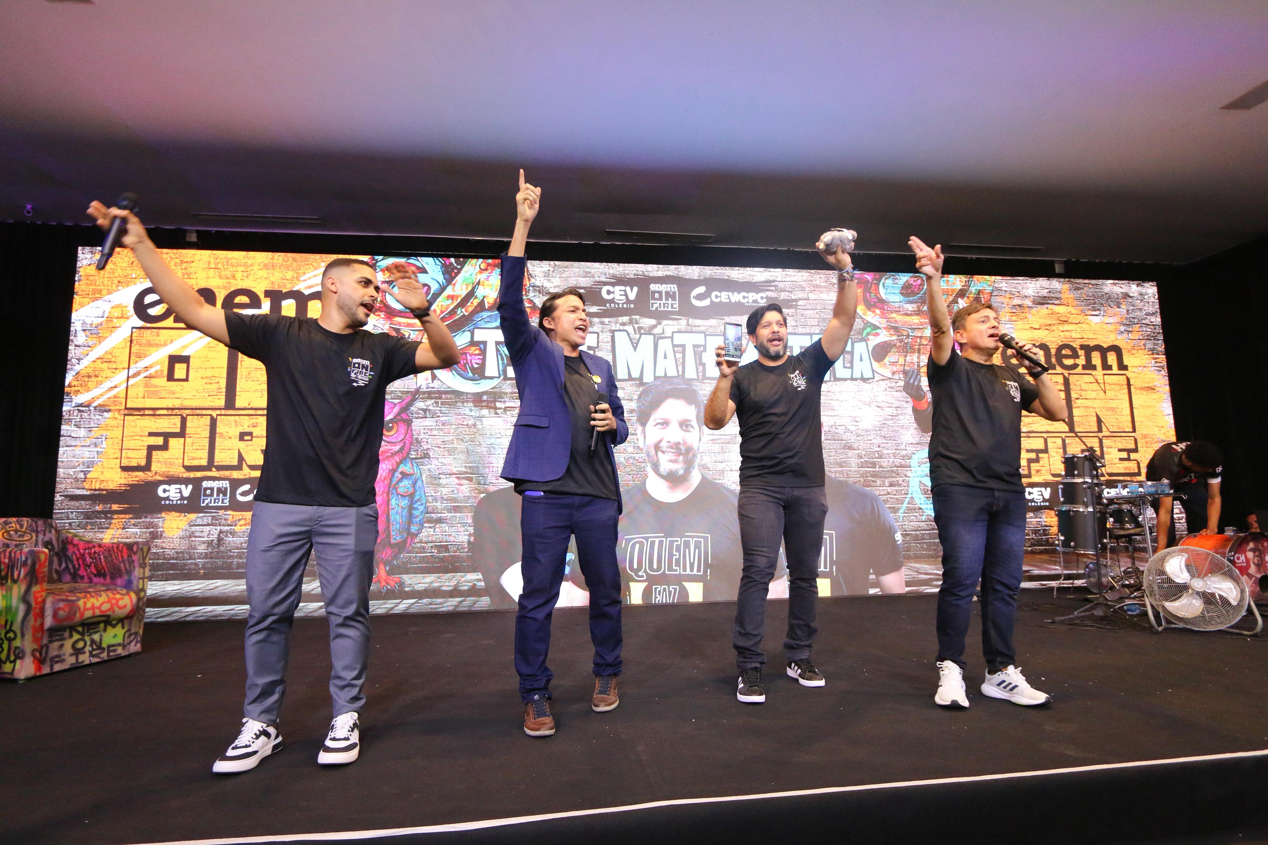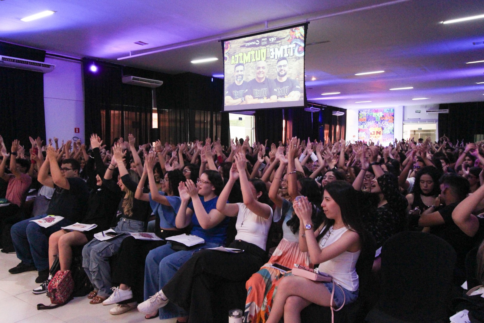 A segunda fase do Enem On Fire 2025 foi ainda mais eletrizante! Isso porque o auditório do Espaço Kennedy foi completamente preenchido por alunos do CEV Colégio e de outras instituições que acreditam no potencial transformador das revisões. Essa etapa aconteceu no sábado (27), com uma programação leve e divertida.